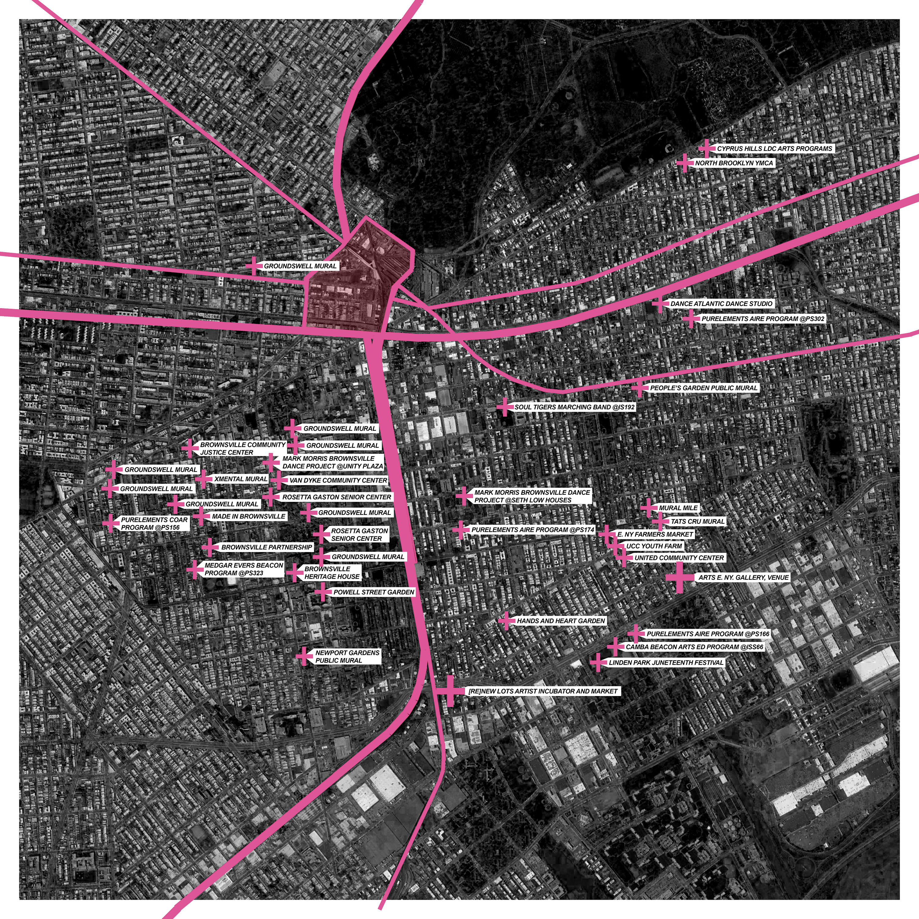 While visiting the site, what emerged to the surface were stories of residents, local artists, urban planners and advocates for East New York, describing how they felt this was one of the last places in New York where they could make a mark on their city or have a say in their neighborhood. East New York has several smaller scale arts initiatives and community run programs, but to access commissioned art productions, residents have to travel over an hour via public transit to reach museums or theaters.